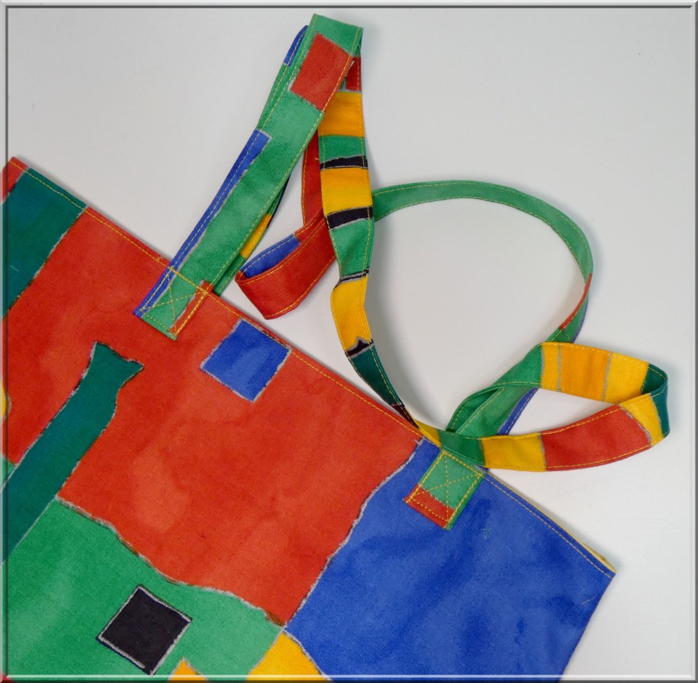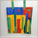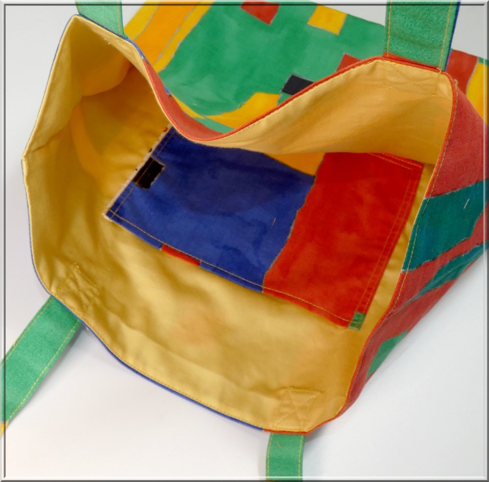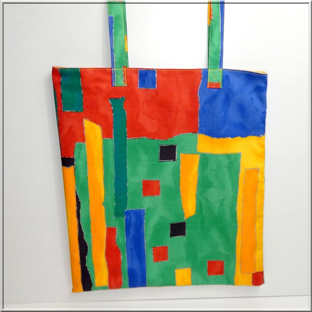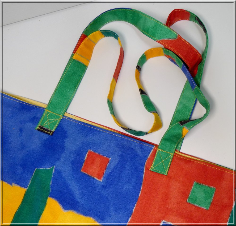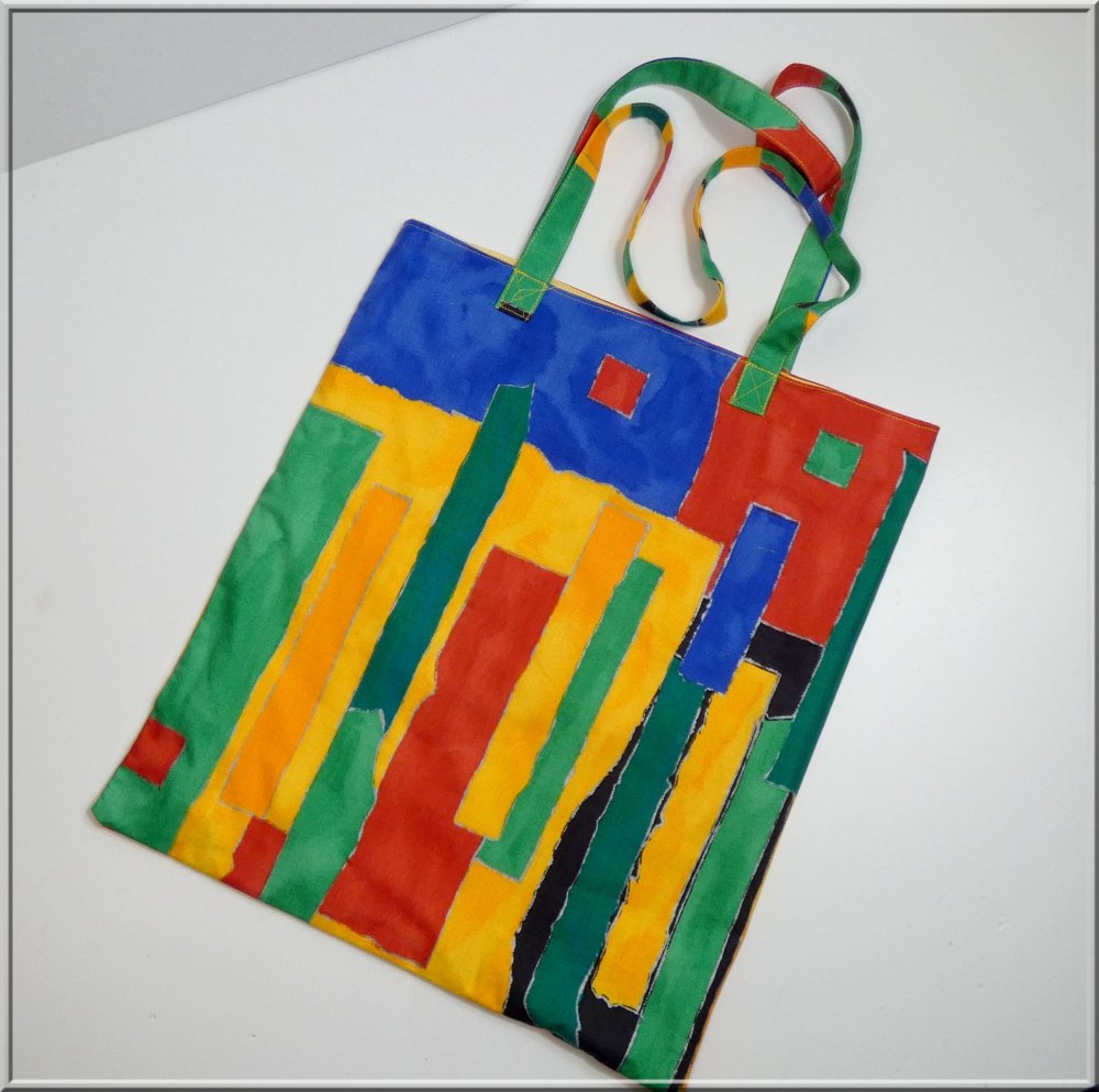 Tote Bag en tissu doublé avec poche intérieure porté épaule.