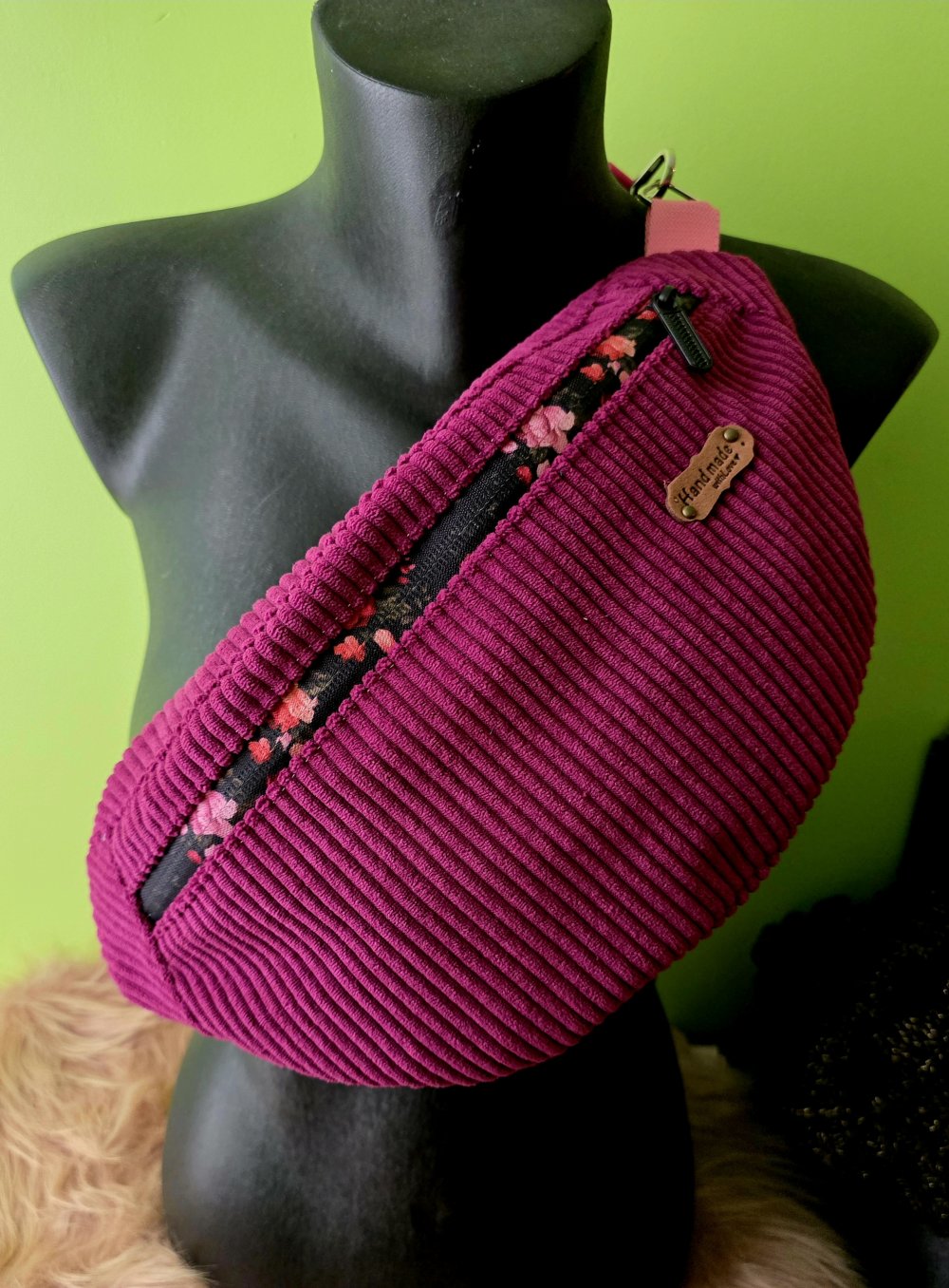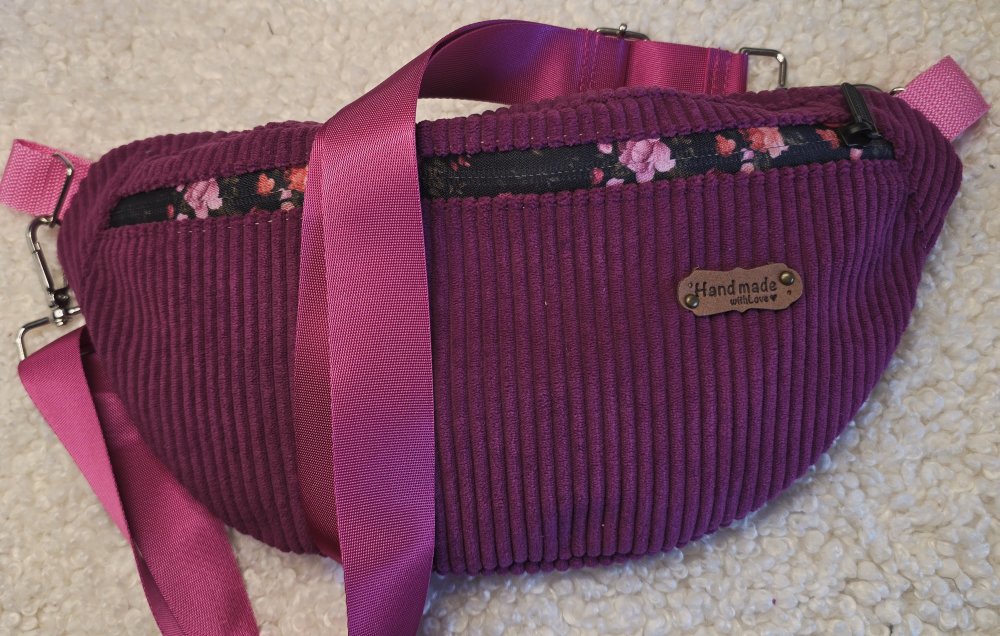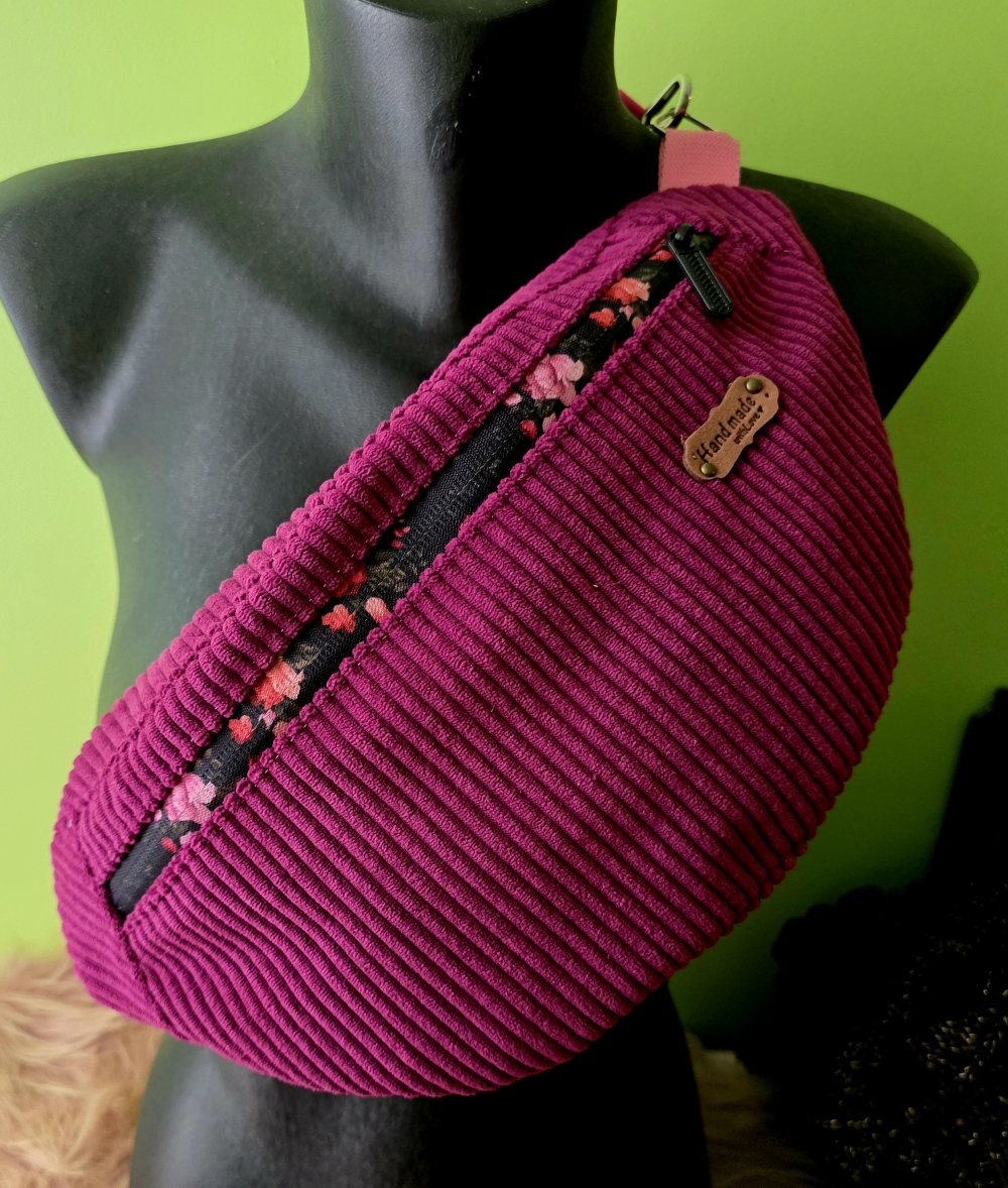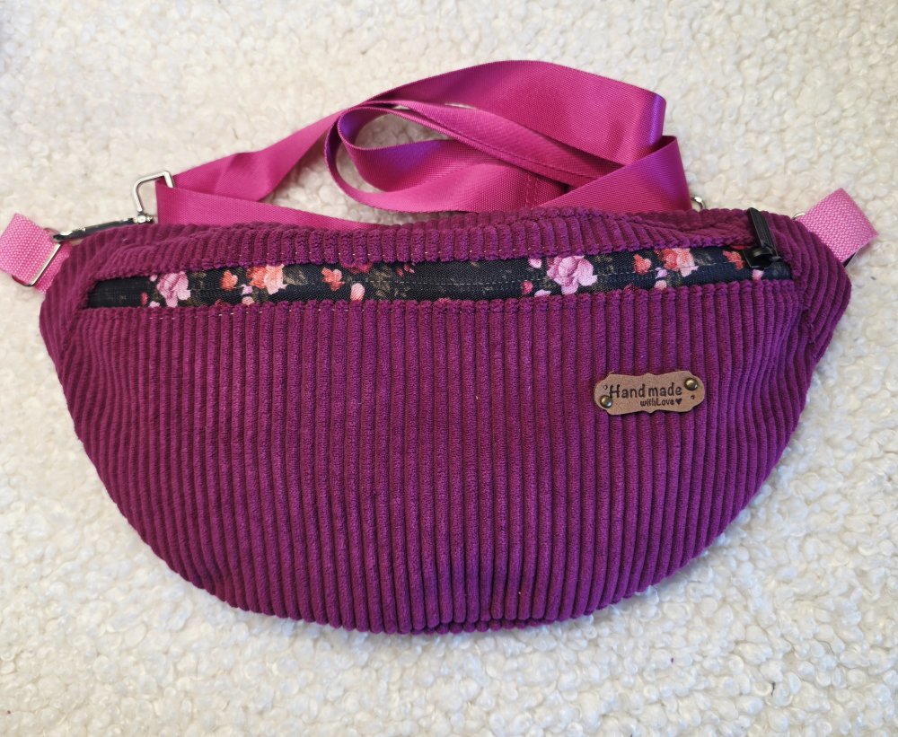 Sac banane en velours côtelé couleur aubergine☀️ – Création artisanale