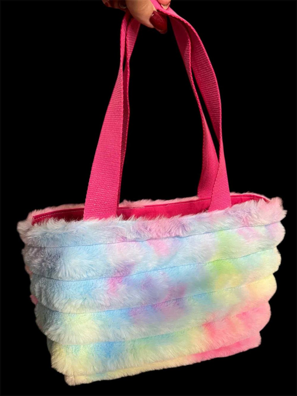 Mini Tote “Nuage Arc-en-Ciel” – Sac pastel en fausse fourrure – Création artisanale – Univers Créatif d’ISA