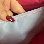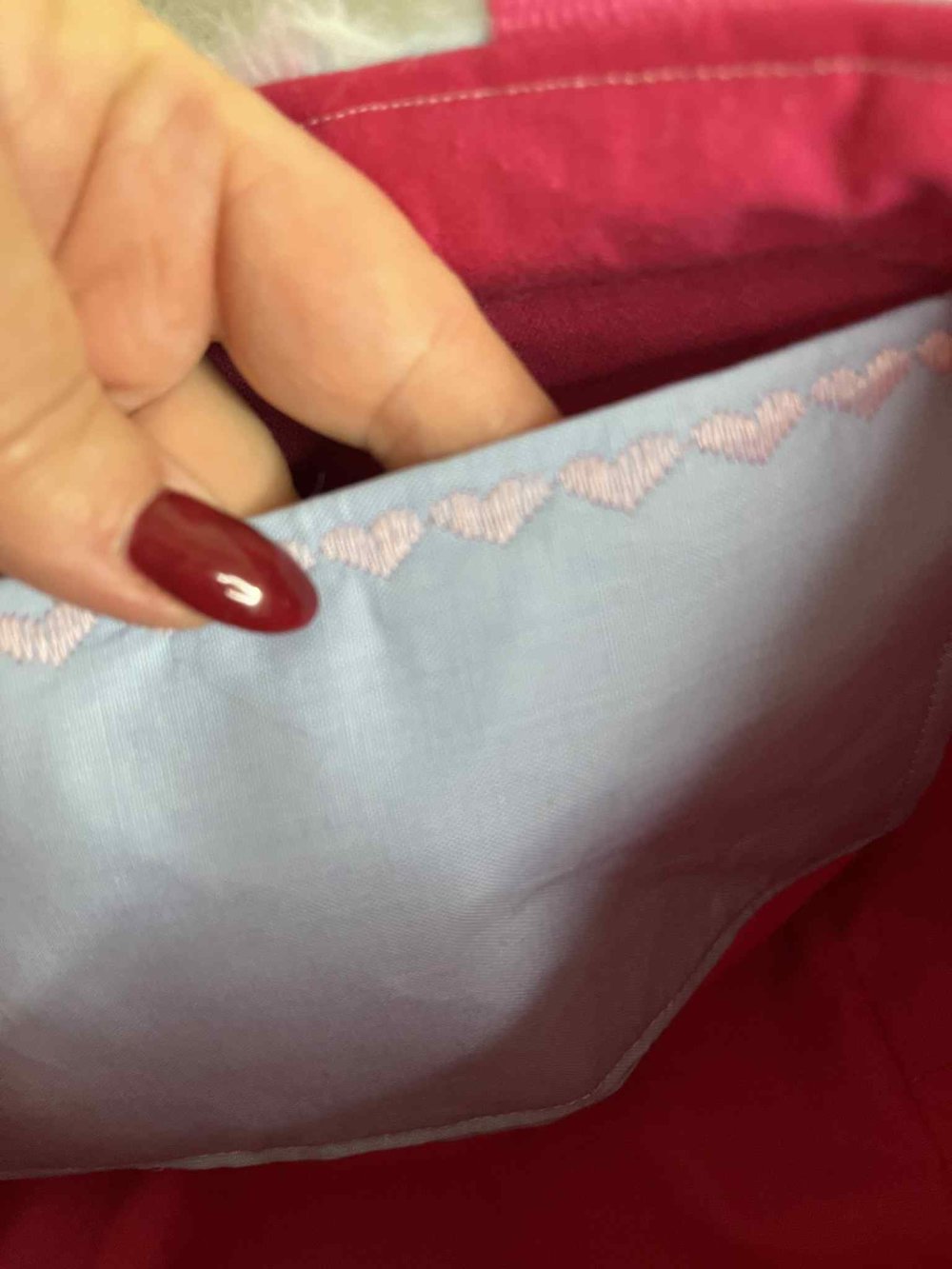 • Intérieur doublé avec pochette bleu ciel brodée rose