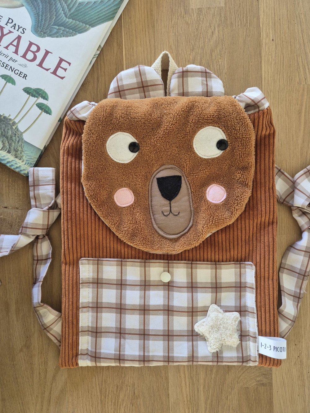 Sac a dos maternelle ours , sac à dos crèche, sac à dos personnalisable , sac à dos enfant , sac à dos velours, cartable enfant