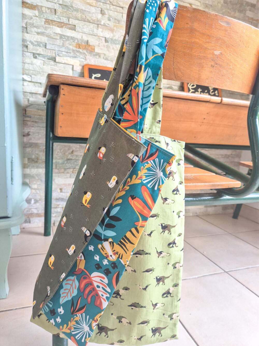 Tote bag enfant, sac bibliothèque , petit sac enfant coton fantaisie doublé