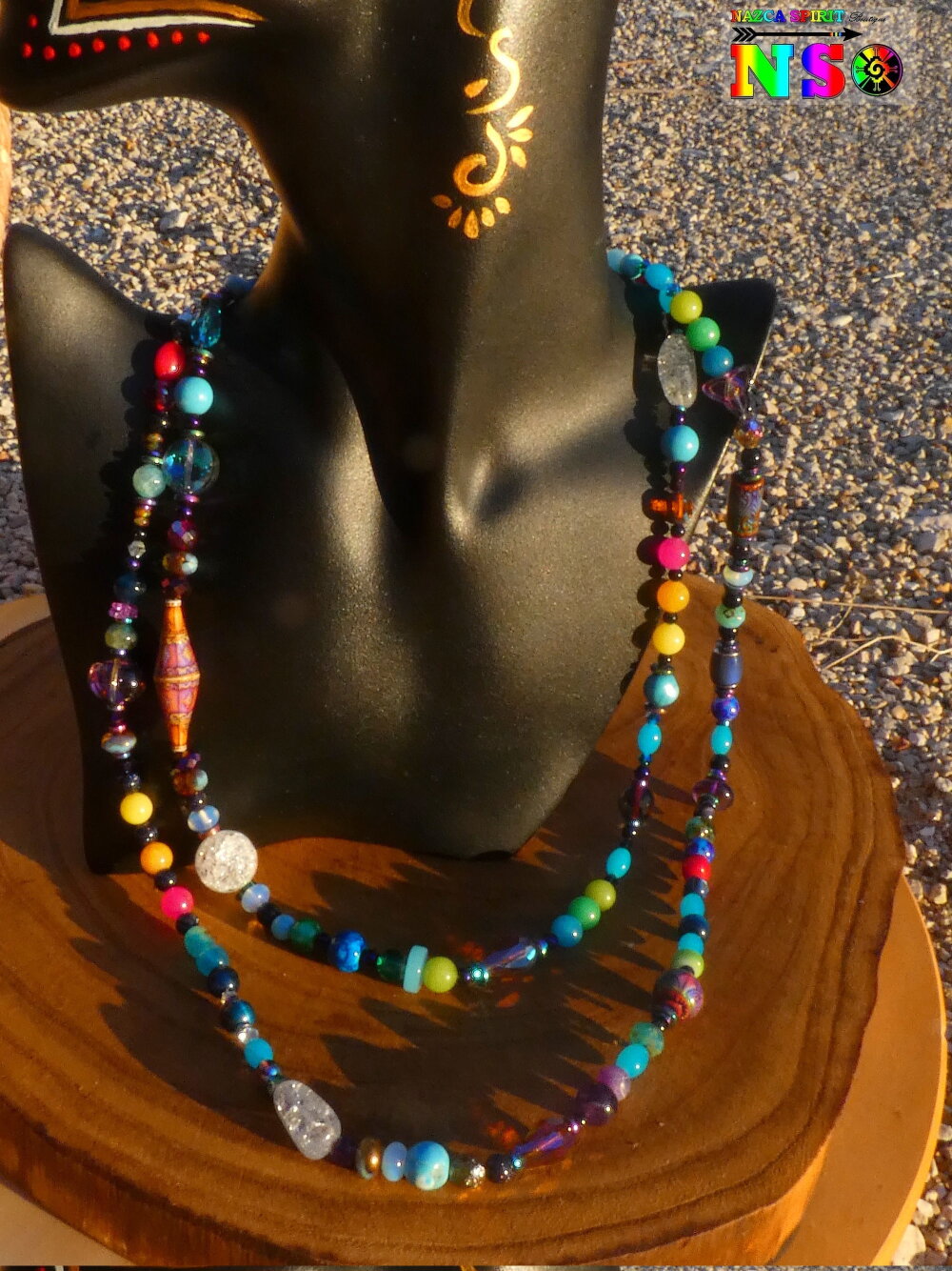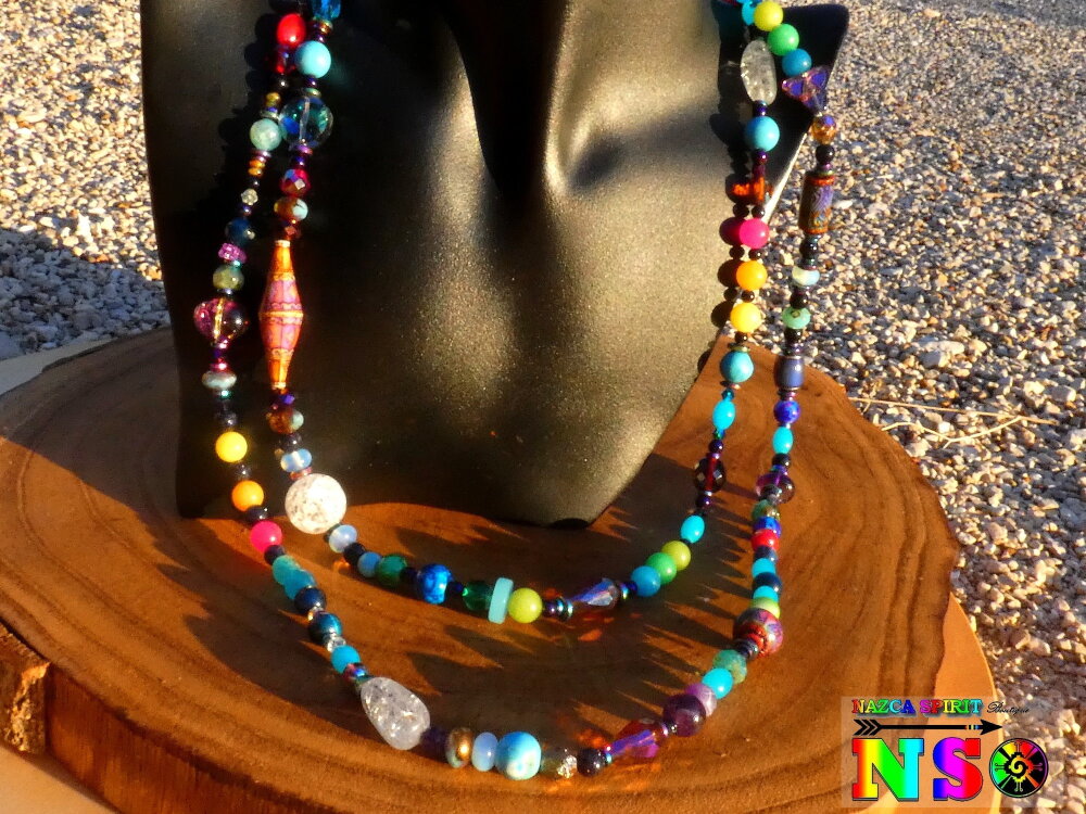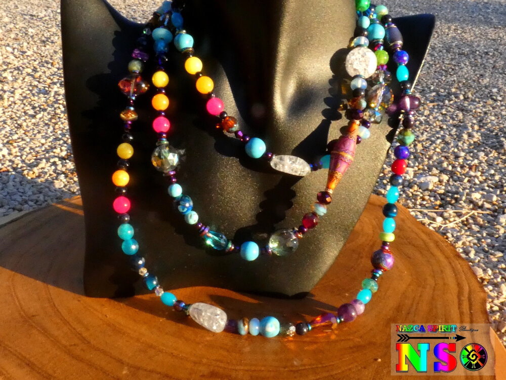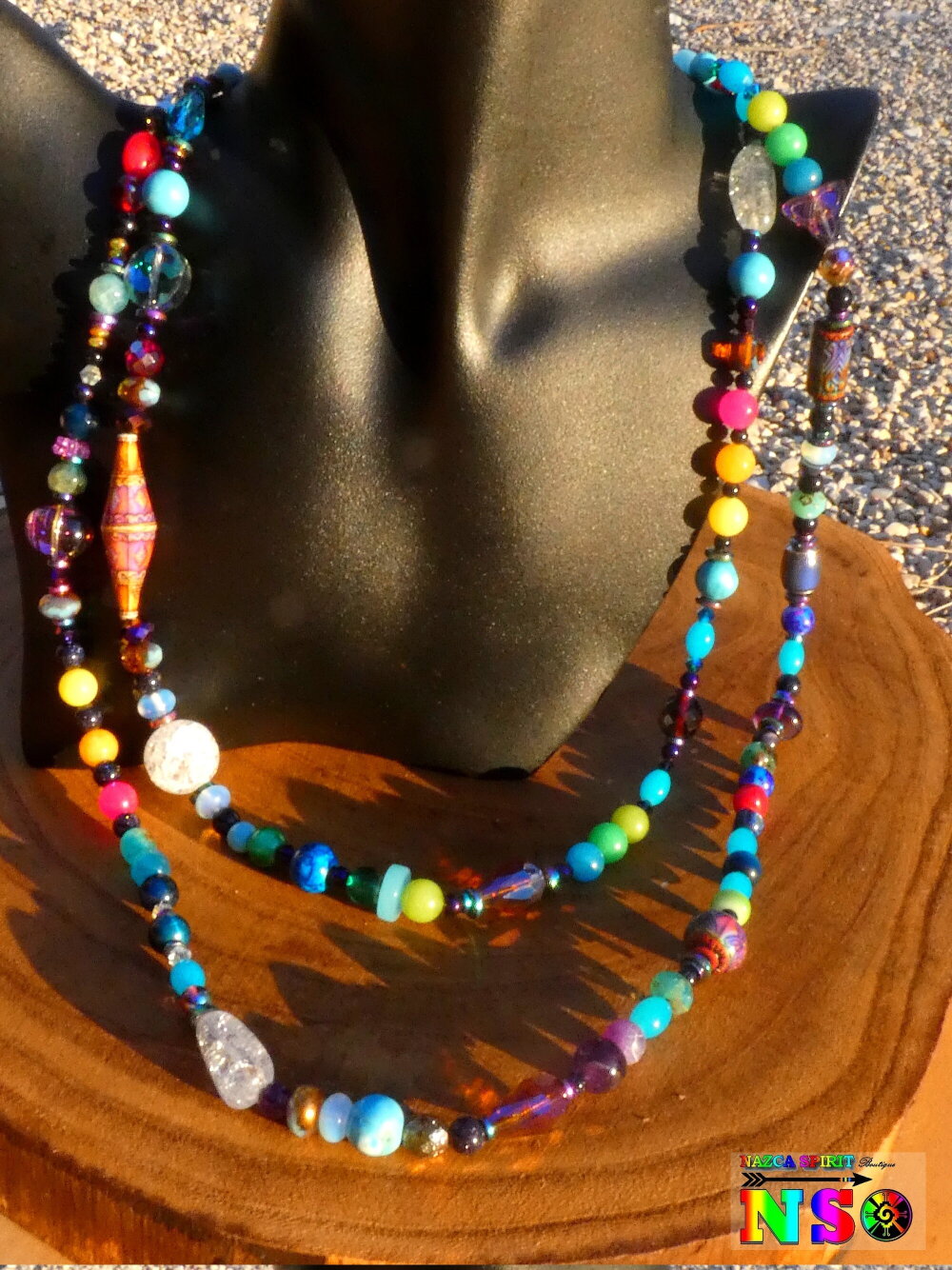 Sautoir Bohème Hippie Esprit Woodstock Perles en Verre de Bohème Pierres Fines et Cristal Swarovski-Collier Multicolore Long 135 cm ("53.14).
