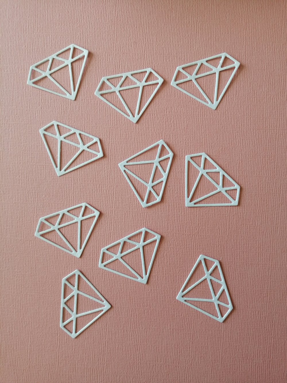 Lot de 10 découpes en papier épais blanc irisé thème mariage diamant
