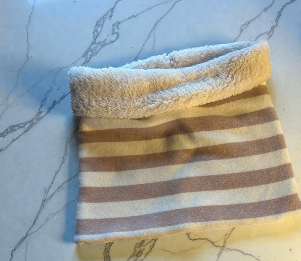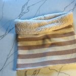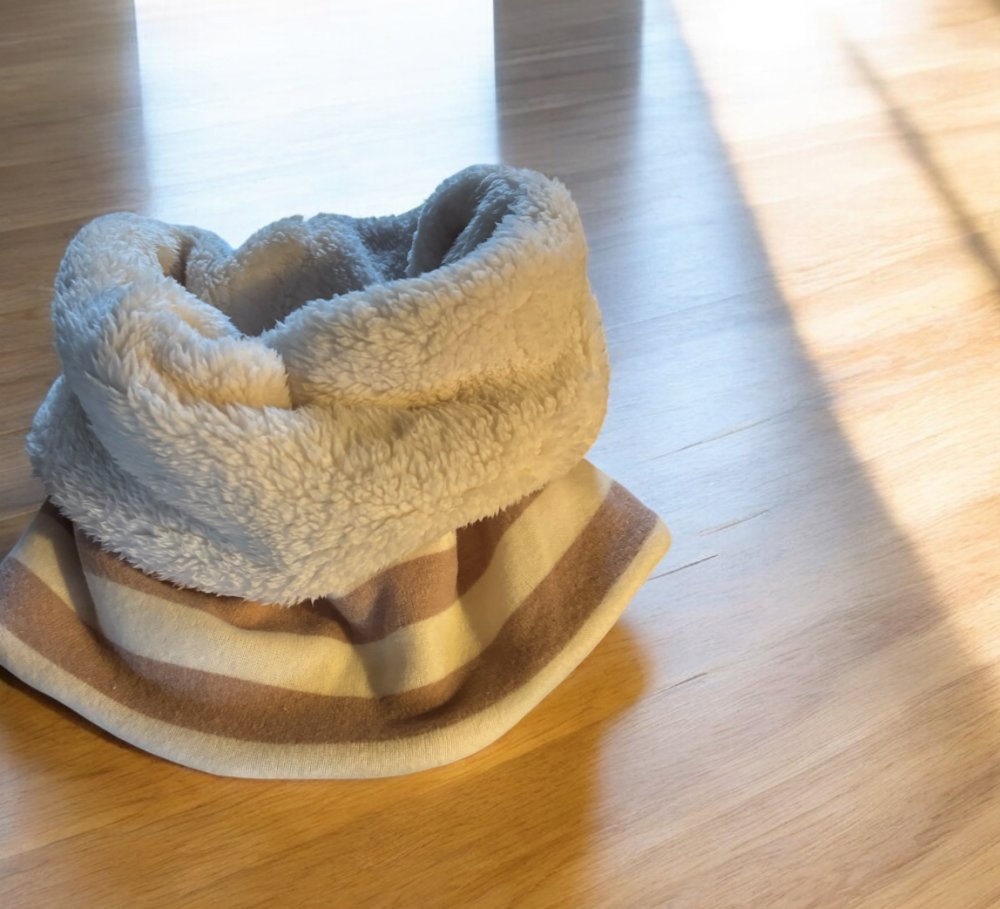Snood adulte, avec à l’intérieur, un tissu tre doux et à l’extérieur, un joli tissu jersey qui tient bien chaud.