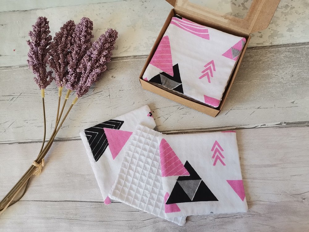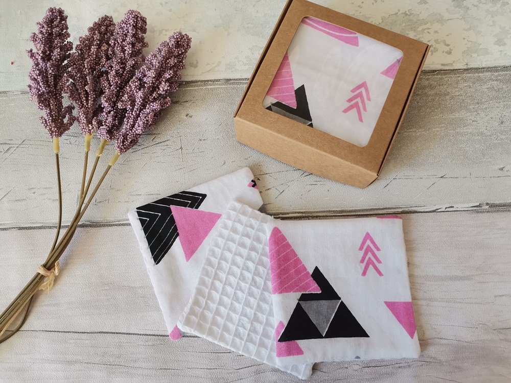 Une face coton imprimé Oeko-Tex et une face tissus nid d'abeilles