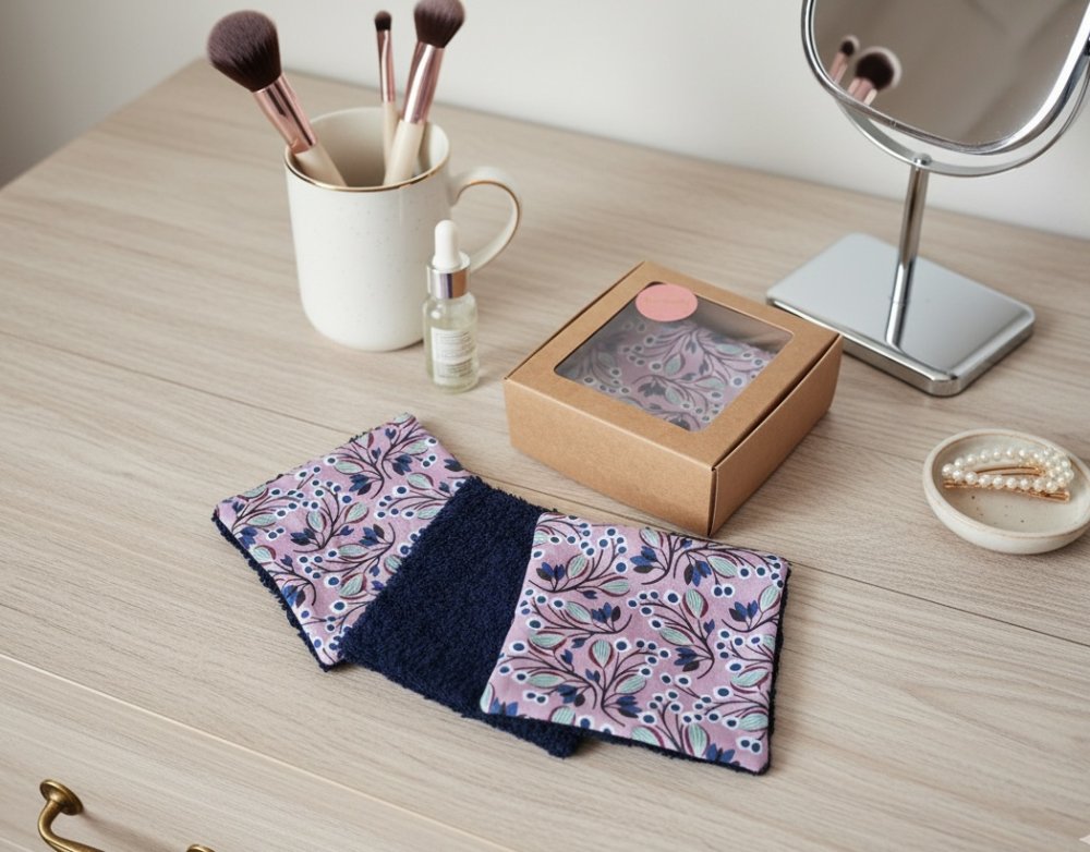 Boite de 6 lingettes démaquillantes coton imprimé et éponge