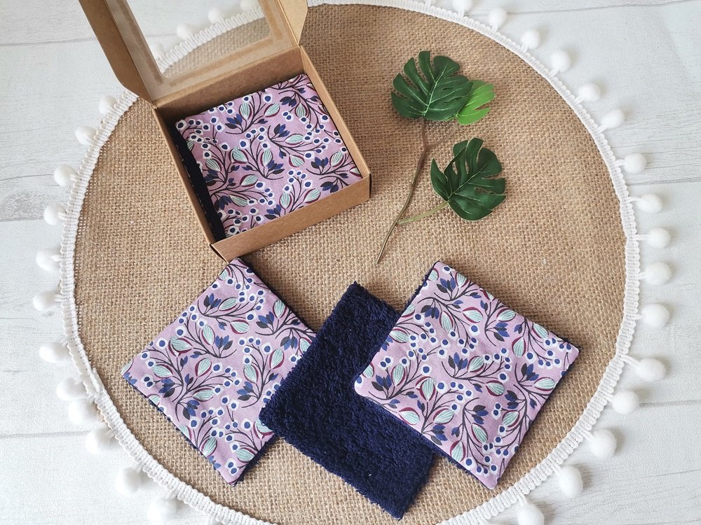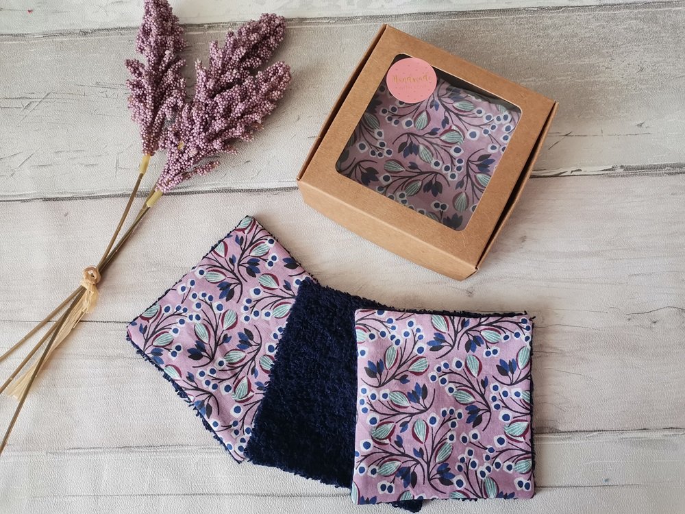 Boite de 6 lingettes démaquillantes coton imprimé et nid d'abeilles Ajout au panier