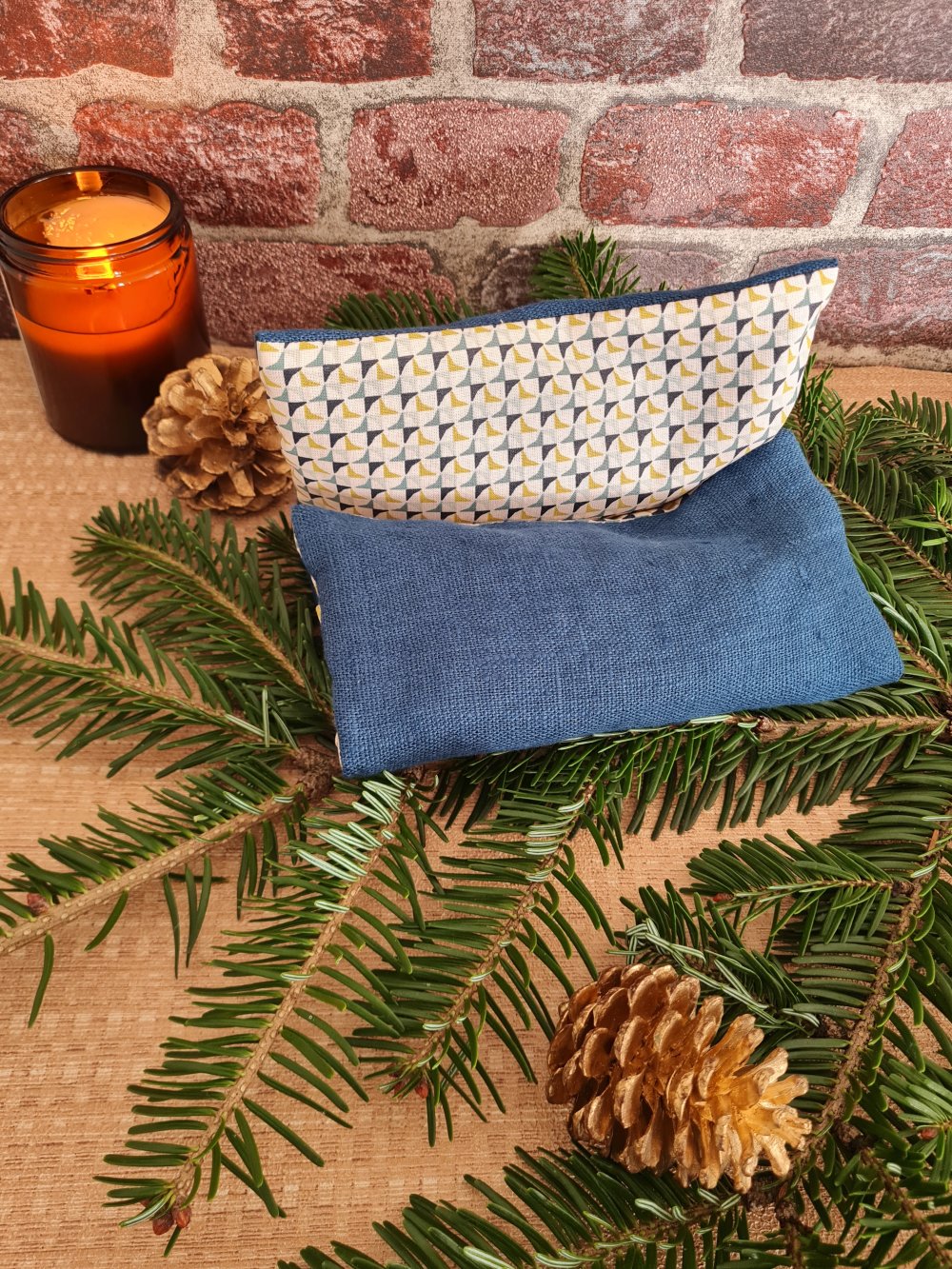 Bouillotte sèche passant au micro onde déhoussable garnie aux graines de lin. Housse en lin et coton