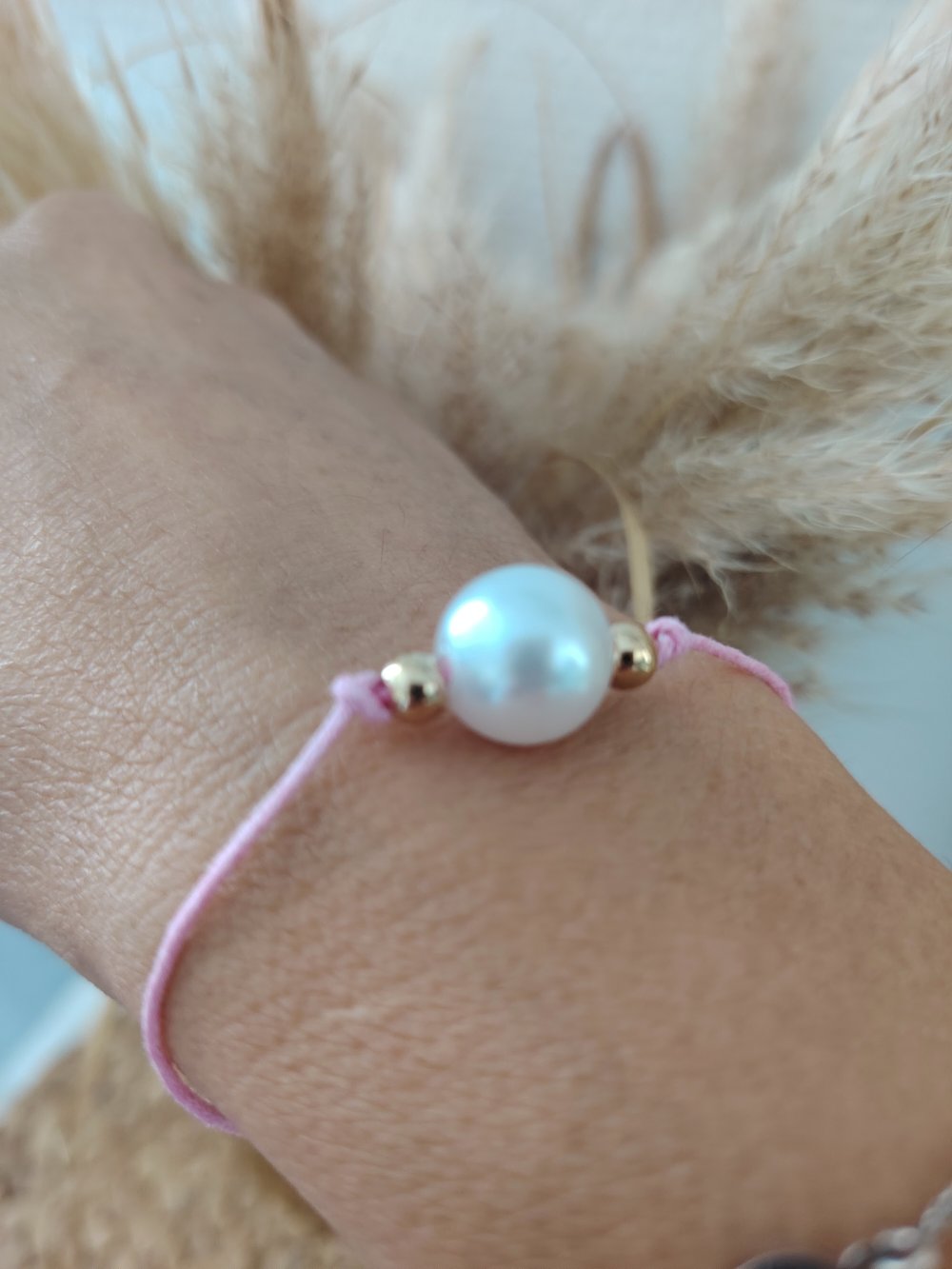 Un petit bracelet rose avec une perle nacrée blanche sera accompagné et d'une crème pour les mains à la rose