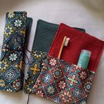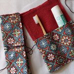 Étui (ou pochette) à brosse à dents et dentifrice réalisé en cretonne de coton au motif oriental à l'extérieur, doublé d'un coton éponge nid d'abeille.