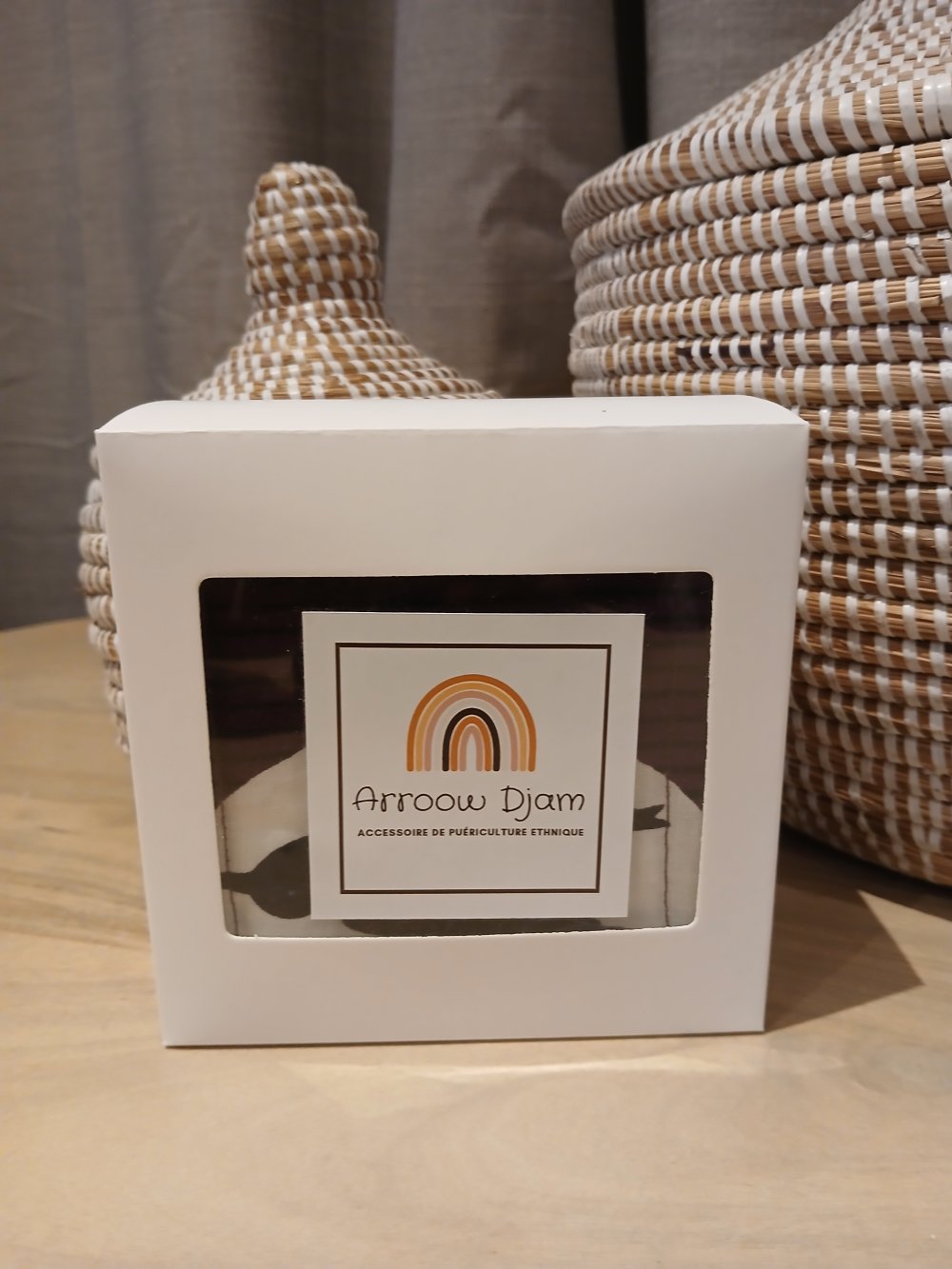 Arroow djam emprunte ses origines dans un dialècte de la Côte d'Ivoire. Cela signifique mettre au dos. En devenant maman, j'ai souvent utilisé le pagne wax pour mettre au dos mon fils comme me l'a transmis ma mère ♡. Les premiers produits que j'ai confectionné sont des portes bébés en hommage à cet héritage culturel qui me tient tellement à coeur.