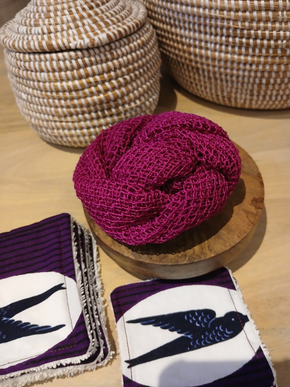 Je vous présente un filet de douche africain que je vous ai déniché en Côte d'ivoire lors de mon dernier voyage.