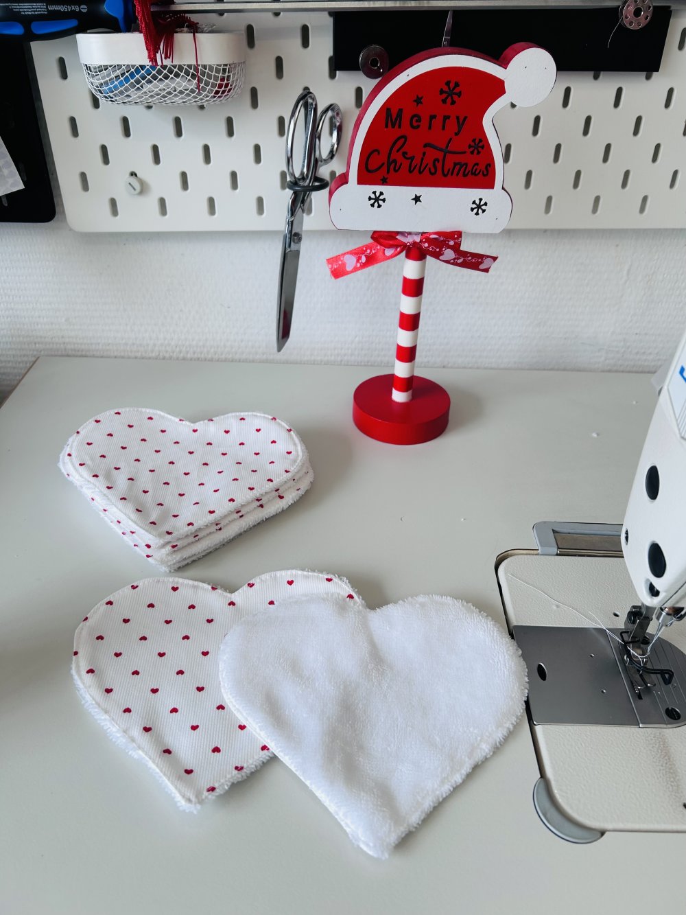 Lot de 7 lingettes nettoyante coeur en tissu coton et tissu éponge bambou blanc.