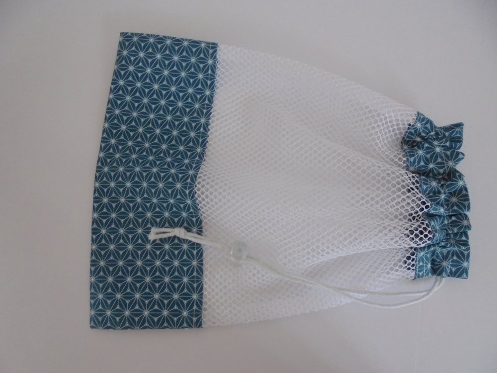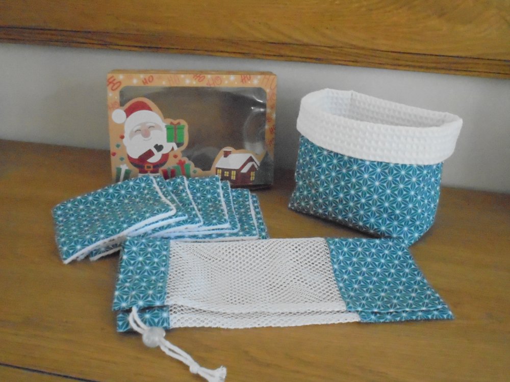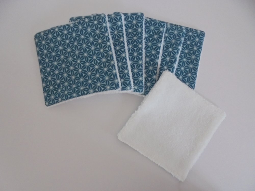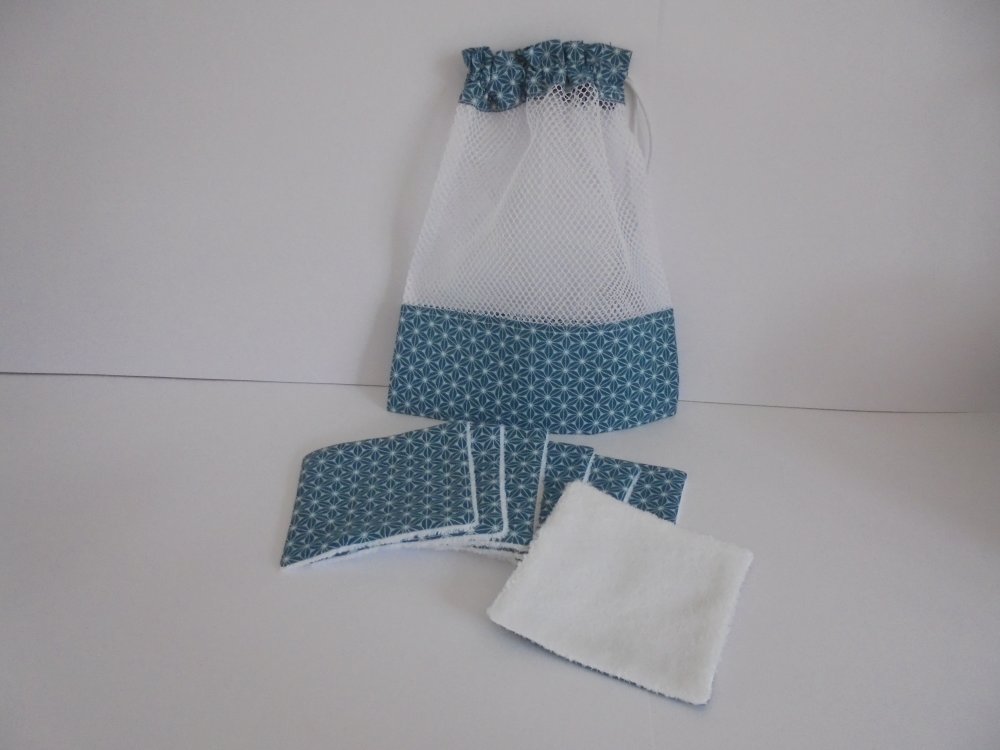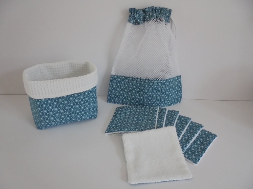 7 Lingettes démaquillantes lavables , Filet de lavage et Panière assortie - Bleu canard