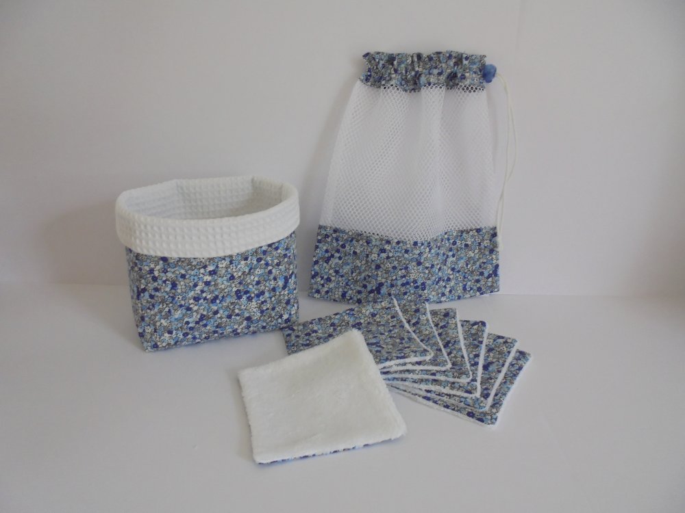 7 Lingettes démaquillantes lavables , Filet de lavage et Panière assortie