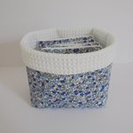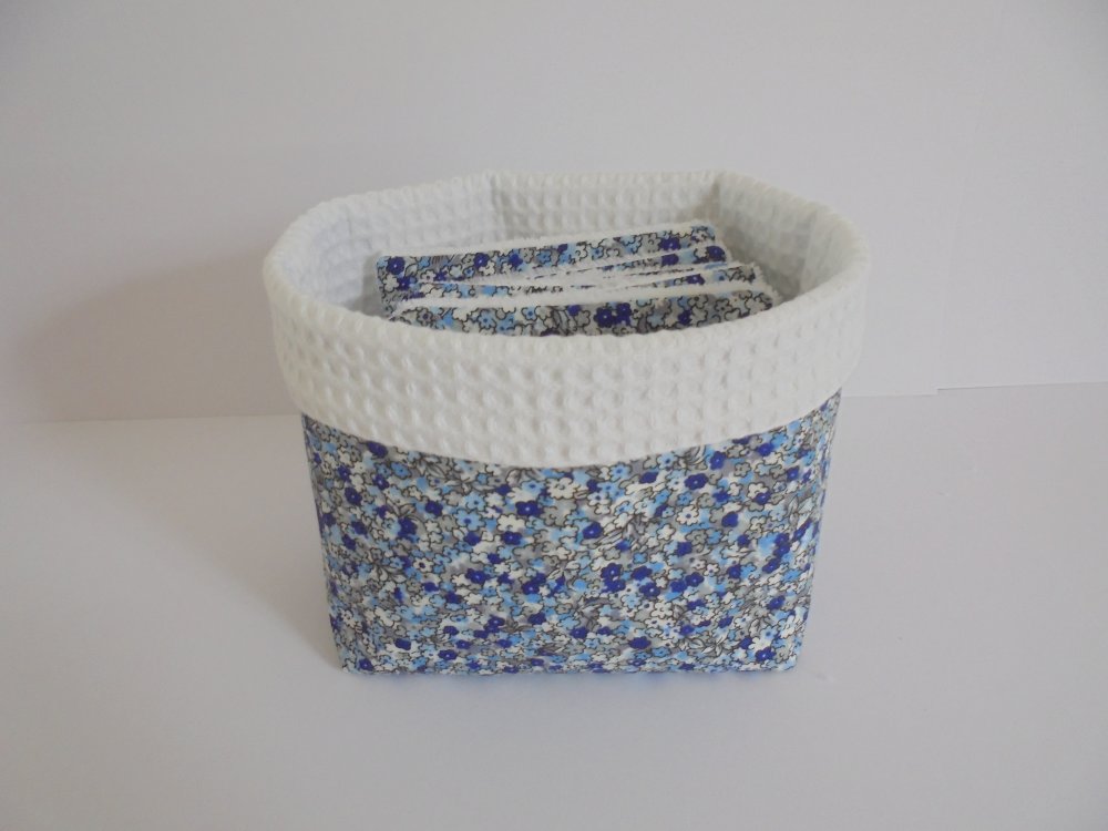 La panière est réalisées en même tissu posée sur une épaisseur de thermocollant qui la rend rigide et la maintien en forme même vide avec l'intérieur en tissu nid d'abeille