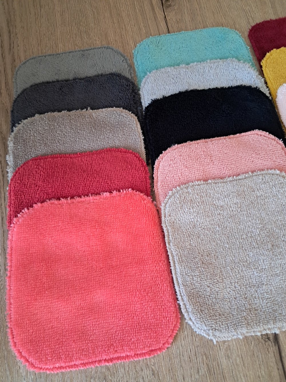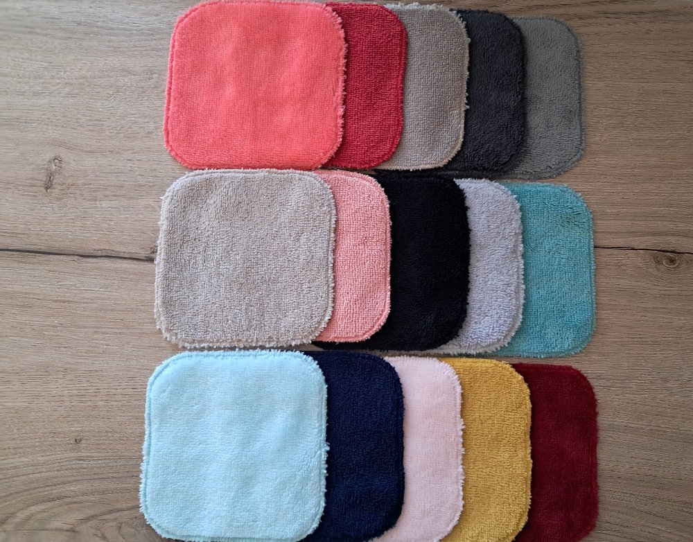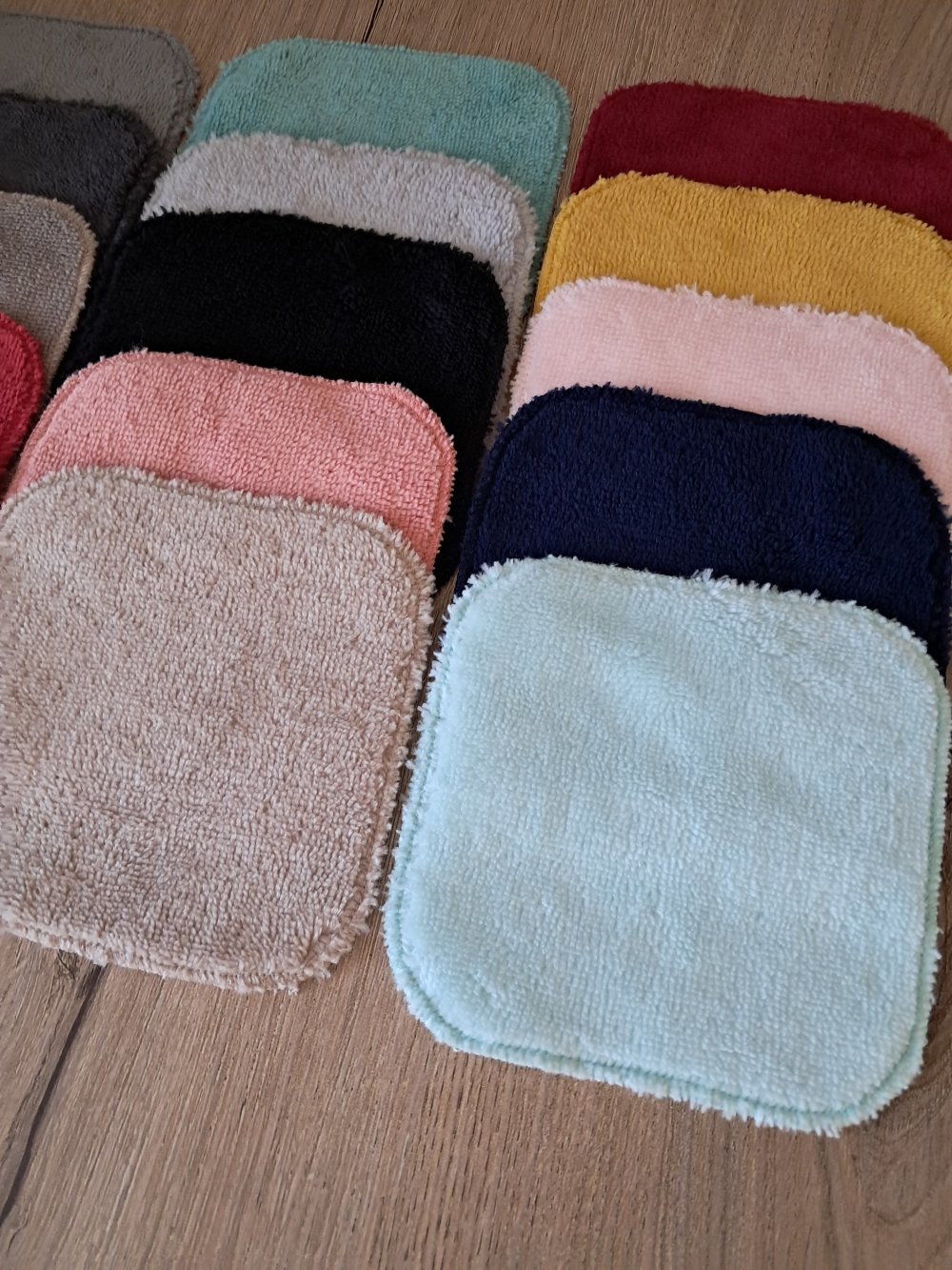 Lingettes lavables en tissu micro éponge de bambou "Douillet". Un face douce aspect velours et l'autre côté tissu au toucher doux .