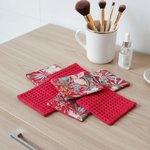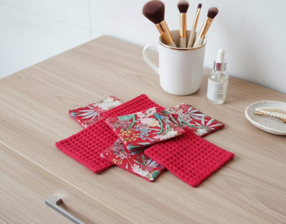 Lingettes démaquillantes coton et nid d'abeilles rouge