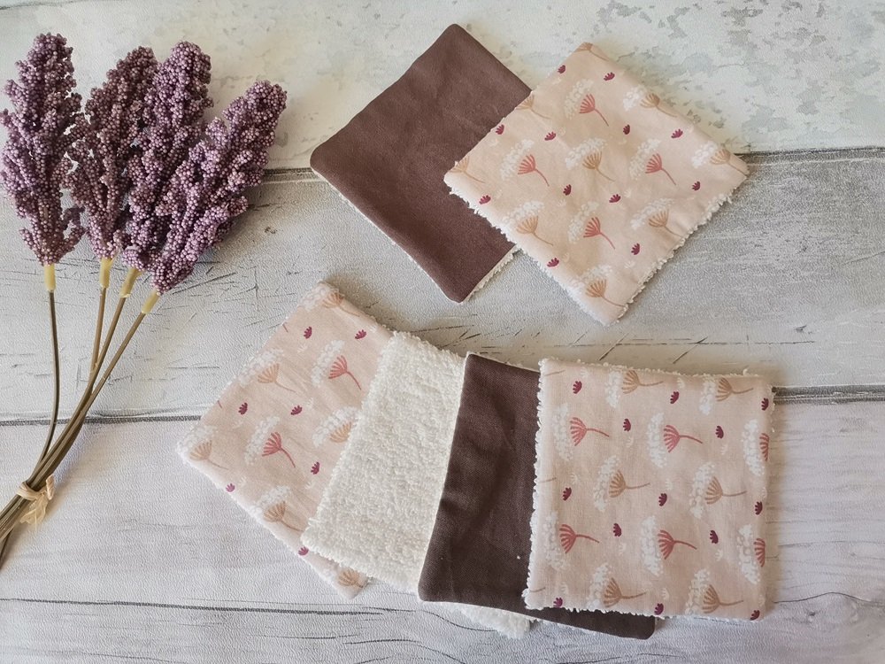 Lot de 8 lingettes démaquillantes pour femmes (4 imprimées et 4 unies)