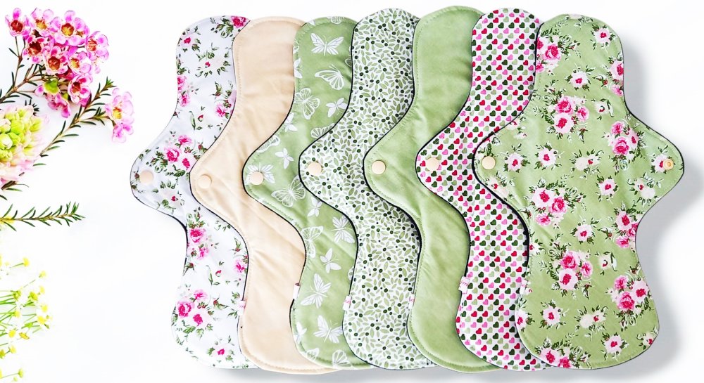 Pack Nuit - 7 Serviettes Hygiéniques Lavables ROSES (XL / NUIT) - Semainier périodique