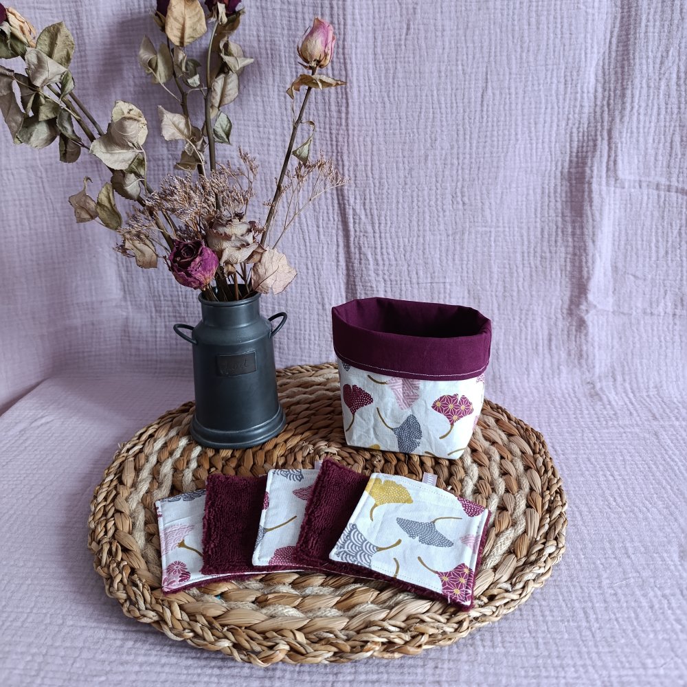 Panière + 5 Cotons Lavables Feuilles de Ginkgo
