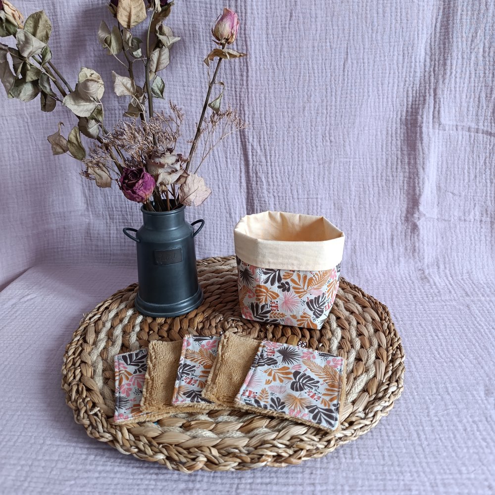 Panière + 5 Cotons Lavables Feuilles de Palmier
