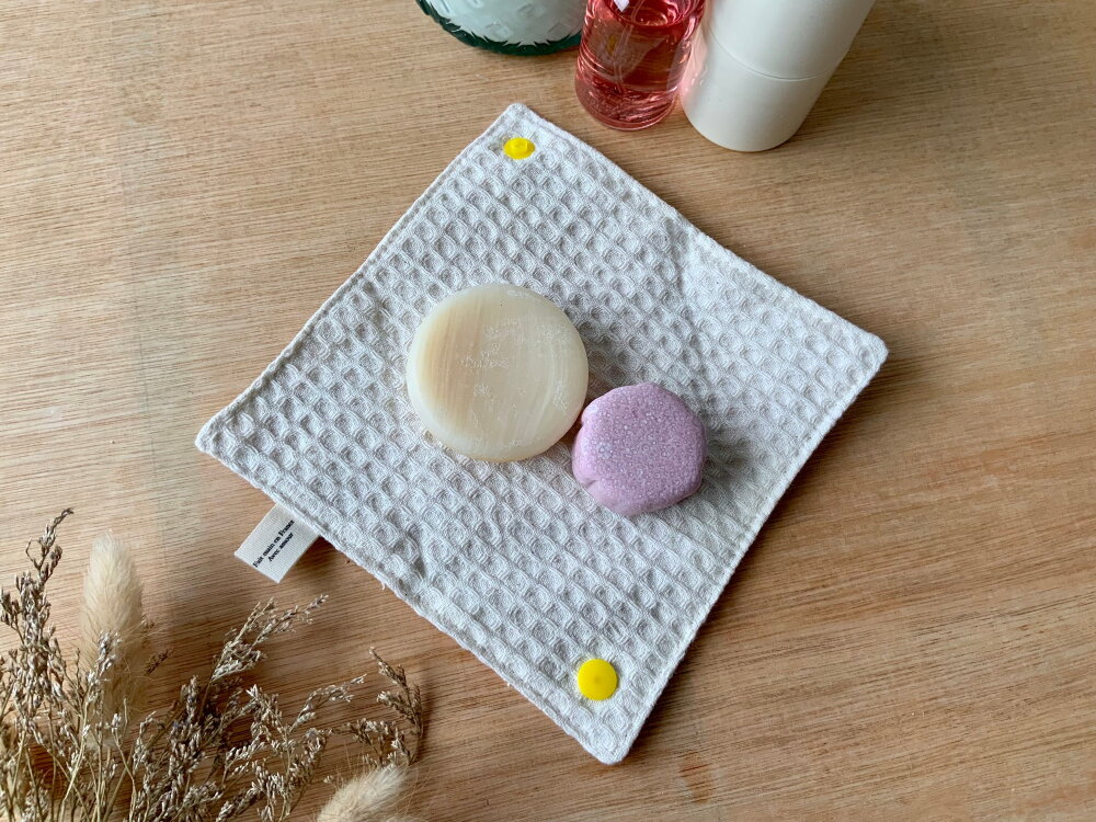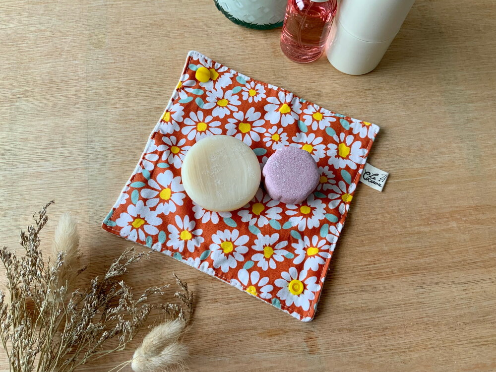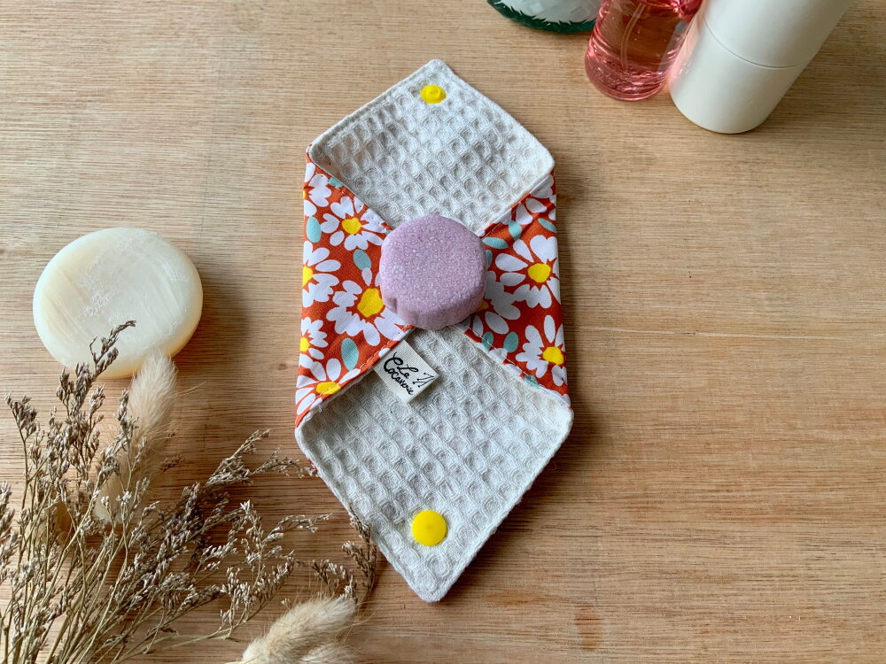 pochette à savon, coton bio, fait main, éponge nid d’abeille, Oeko-Tex, pochette imperméable, accessoire zéro déchet, cosmétique solide