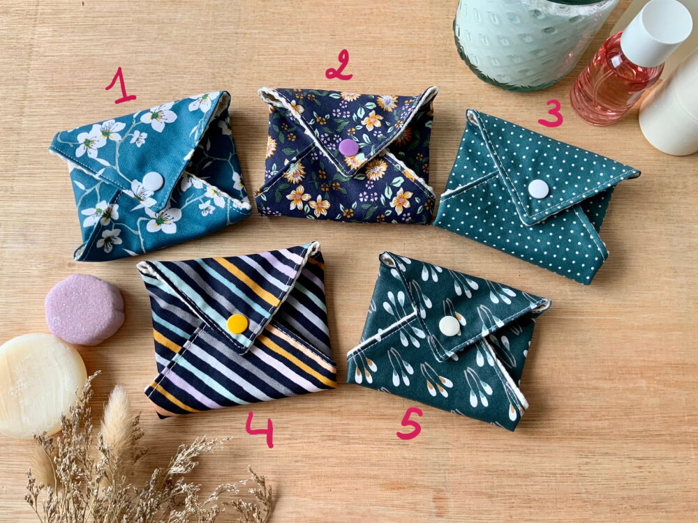 Gardez vos produits solides au sec avec ces jolies petites pochettes à savon et produits solides faites à la main par mes soins ! 🤗