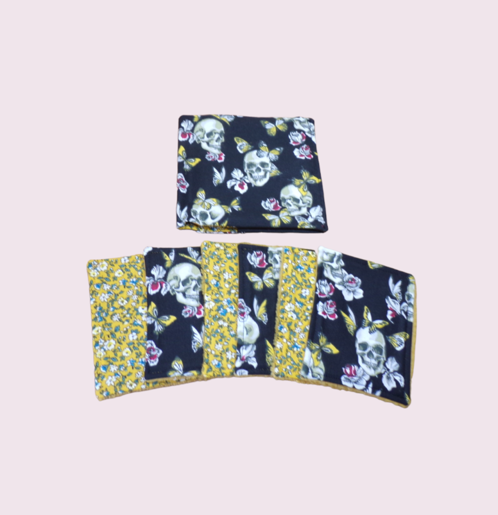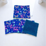 Les 6 lingettes lavables ont une face en coton imprimé et une autre en éponge bambou. Elles mesurent 10 x 10 cm.