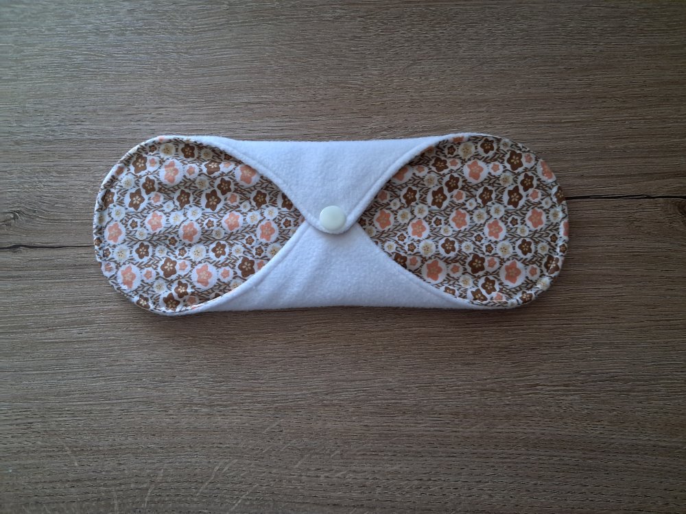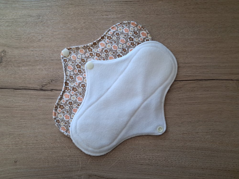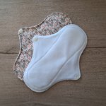 L'intérieur est composé de deux épaisseurs de tissu éponge de bambou très absorbant et d'une face de tissu imperméable (PUL).