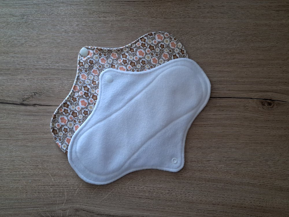 L'intérieur est composé de deux épaisseurs de tissu éponge de bambou très absorbant et d'une face de tissu imperméable (PUL).