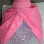Turban sèche cheveux en tissu éponge de très bonne qualité.