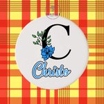 Sous verre en céramique - sublimation - initiale - prénom - fleurs - bleues - surnom - personnalisation - mixte