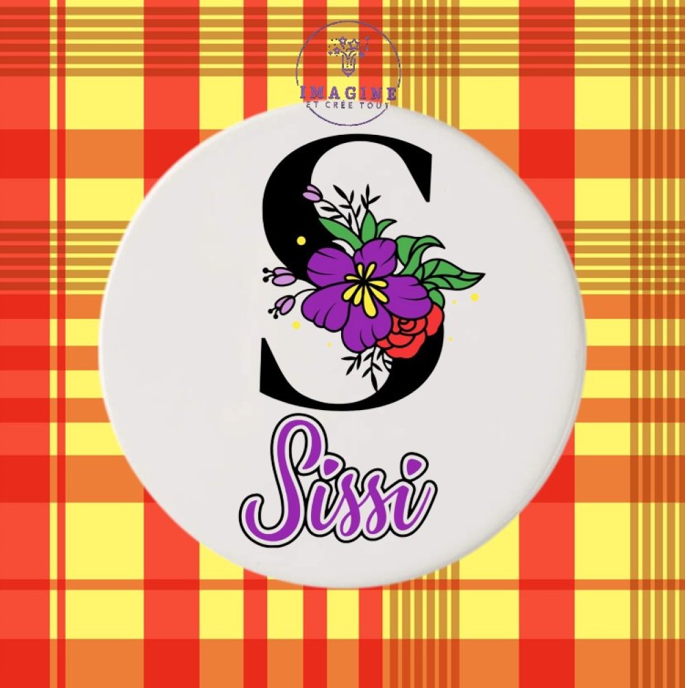 Sous verre en céramique - sublimation - initiale - prénom - fleurs - surnom - fille - multicolores - (prénom à preciser)