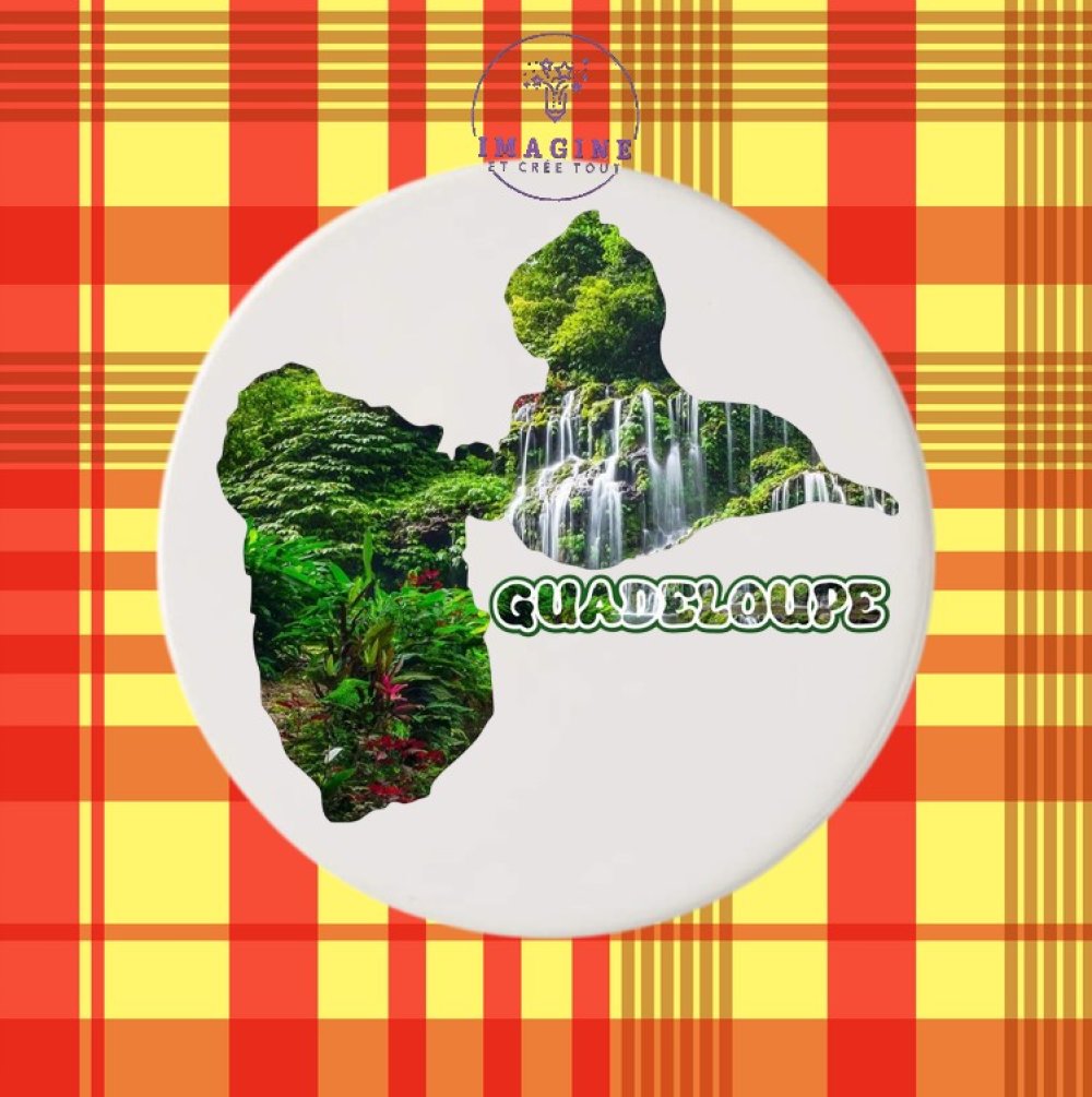 Sous verre en céramique - sublimation - paysage guadeloupe - cascade - 971 - forêt - carte - karukera - tropique - soleil