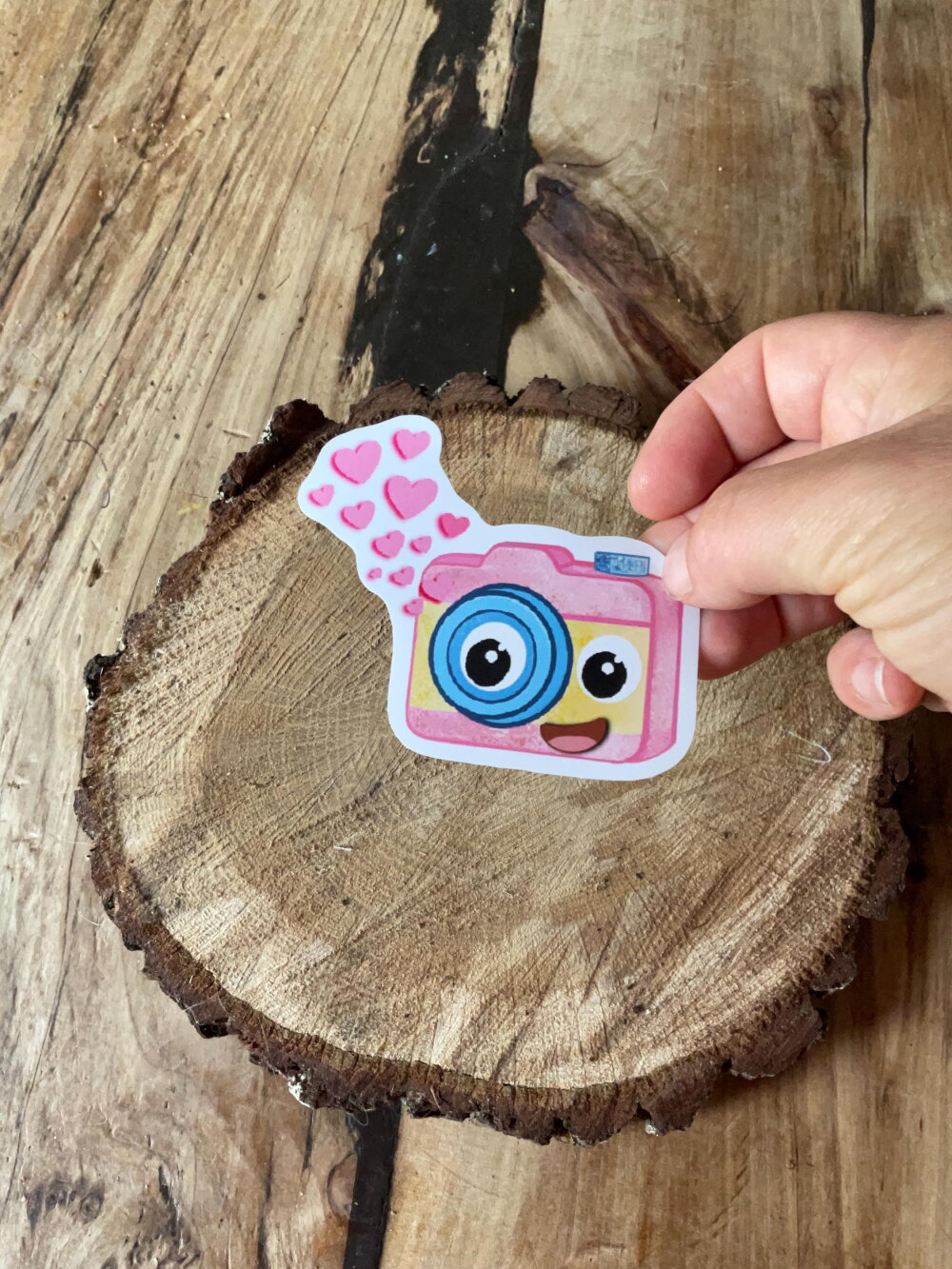 Sticker appareil photo kawaii – autocollant mignon avec cœur – déco carnet, scrapbooking, bullet journal