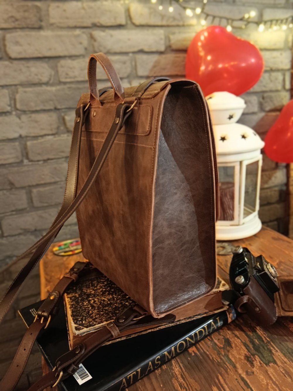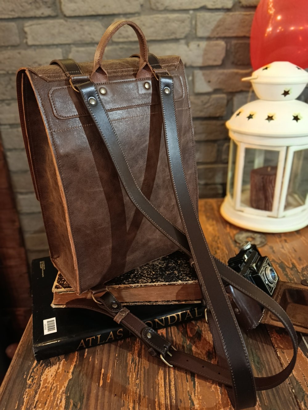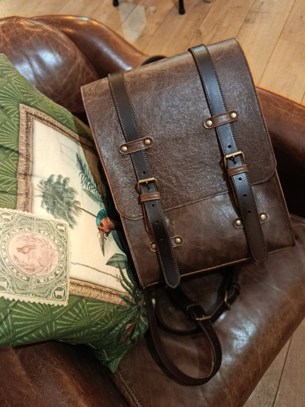 Conçu en vachette pull up effet vintage et entièrement doublé en porc, ce sac à dos allie solidité et légèreté. Ses dimensions (36cm de haut, 26cm de large et 15cm d'épaisseur) vous procurent un beau volume de rangement, agrémenté par 4 poches internes, dont une zippée.
