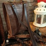 Sac en vachette, doublure porc et bretelles réglables en collet.