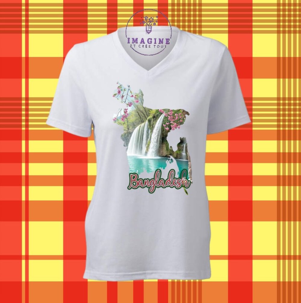 T-shirt personnalisé pour femme - col v - sublimation - bangladesh - cascade de madhabkund - carte