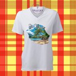 T-shirt personnalisé pour femme - col V - sublimation - carte île de la réunion - plage - 974 - palmiers - sable