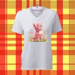 T-shirt personnalisé pour femme - col V - sublimation - châton rose - fleurs - animal - prairie - chat - jardin fleuri