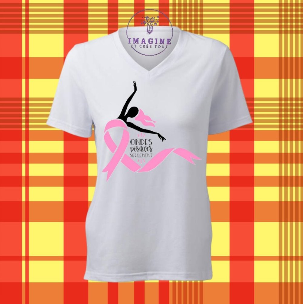 T-shirt personnalisé pour femme - col V - sublimation - danseuse - octobre - rose - ondes positives seulement - femme