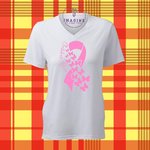 T-shirt personnalisé pour femme - col V - sublimation - femme - octobre - rose - nœud papillons - dépistage - hope