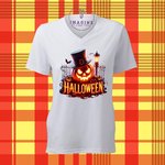 T-shirt personnalisé pour femme - col V - sublimation - halloween - bonbons - candy - citrouille - déguisement