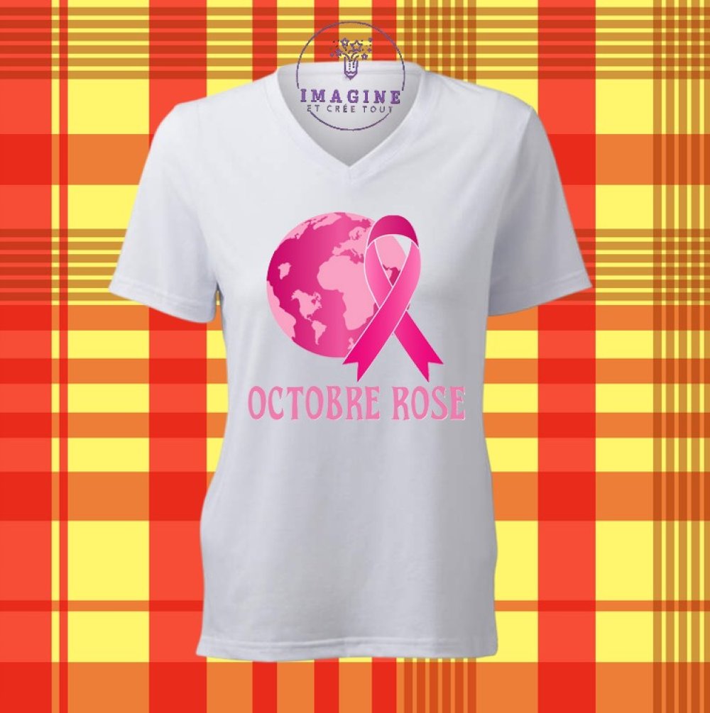 T-shirt personnalisé pour femme - col v - sublimation - octobre rose - femme - nœud - espoir - hope - prévention - 971