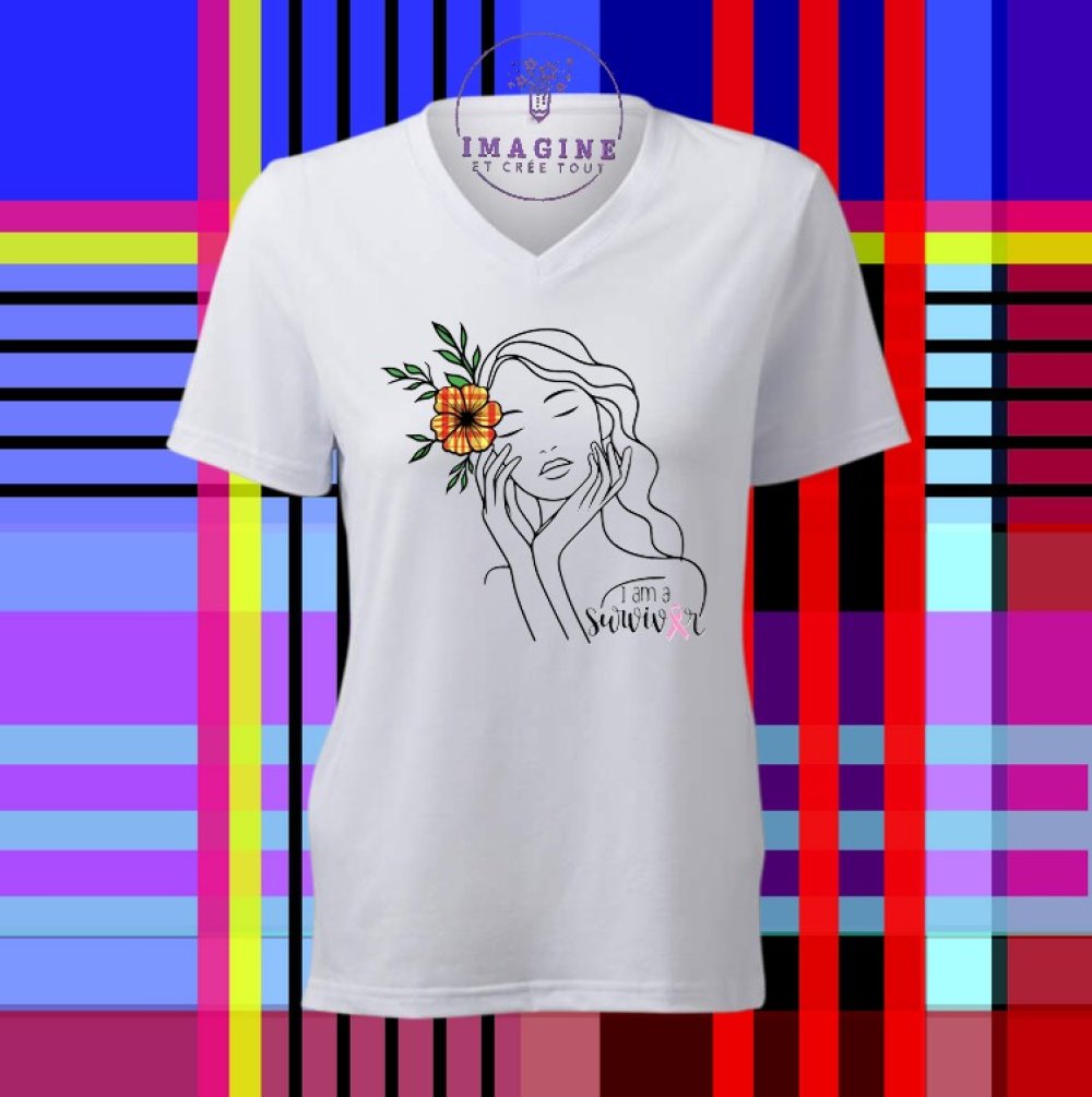 T-shirt personnalisé pour femme - col V - sublimation - octobre - rose - i am a survivor - espoir - dépistage