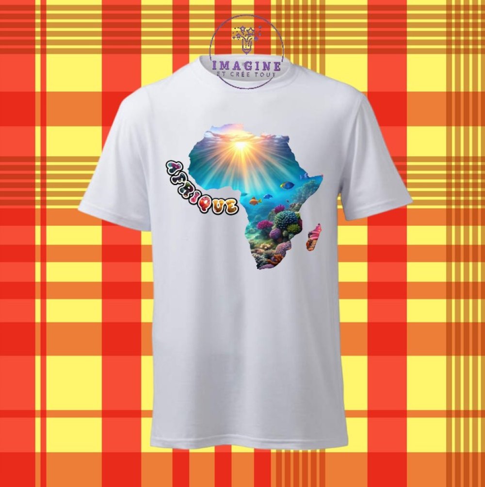 T-shirt personnalisé pour homme - ras du cou - sublimation - carte afrique - fond marin - continent - cameroun - kenya