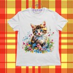 T-shirt personnalisé pour jeunes - col rond - sublimation - châton - chat - fleurs - animal domestique - prairie - pré