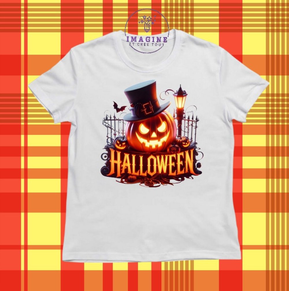 T-shirt personnalisé pour jeunes - col rond - sublimation - halloween - bonbons - candy - citrouille - déguisement